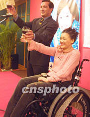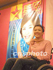 桑蘭九日晚在她出任中國特奧”愛心大使”酒會上對全國殘聯主席鄧樸方說,她對能參加這樣的運動會深感榮幸。作者:宋吉河