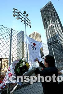 9月10日(美國紐約時(shí)間),在紐約曼哈頓街頭,人們用各種紀(jì)念品追悼”9.11“事件遇難者。作者:王瑤