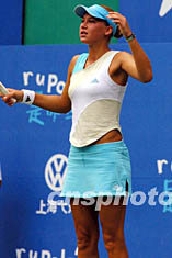 十五日下午,在上海仙霞網球中心舉行的polo公開賽女單決賽中,庫爾尼科娃最終還是沒有能圓自己的單打冠軍夢,以0比2不敵本次賽事的頭號種子斯馬施諾娃,仍然屈居亞軍。圖為庫爾尼科娃在比賽中。作者:湯彥俊