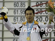 圖:中國選手樂茂盛奪得男子舉重62公斤級冠軍