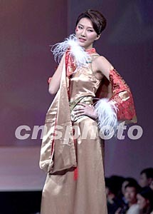 中國名模劉多十八日晚參加在廣州舉辦的二00二廣東(秋季)時裝周,并領銜演繹廣東絲麗國際集團的品牌服飾。作者:劉衛勇