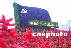 黨的十六大即將召開,濟南市群眾歡欣鼓舞,以各種形式喜迎十六大,這是在濟濼路廣場近日樹起的“鮮花雕塑”。