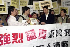 香港各界繼續抨擊《東周刊》的做法。演藝界等四十個團體今天在此間報紙刊登聲明,大標題是“天地不容”。聲明強烈譴責《東周刊》扭曲新聞自由,呼吁社會抵制個別不良媒體,罷買、罷看。
