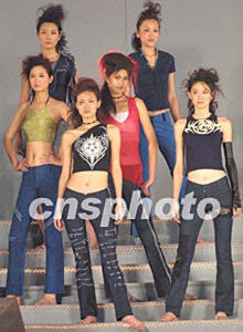 在2002年中國廣州(新塘)國際牛仔服裝節上,香港設計師俞儷軒的作品四日晚由中國名模姜培琳領銜展現在人們面前。作者:趙振清