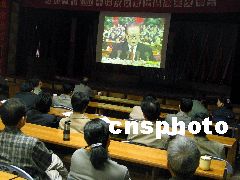 11月8日上午,山東省人大常委會機關組織全體黨員、干部、職工,集體收看了黨的十六大開幕式的電視轉播。王輝 攝
