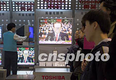 在素有“神州第一街”之稱的王府井大街和西單商業街上,上百面彩旗迎風起舞,近千盞燈籠高高懸掛,迎接十六大勝利召開的橫幅、標語和多媒體大屏幕櫛次鱗比,令人目不暇接。許多手拿小紅旗的顧客被不時傳出的掌聲所吸引,紛紛涌向商場里的視聽專賣區,而商家們也自發地把所有的電視機都調到了中央電視臺的直播頻道,有的商場還為顧客擺放了坐椅。