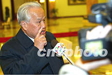 中國共產黨第十六次全國代表大會十日繼續舉行分組會,出席福建代表團會議的陳錦華代表接受香港記者訪問。 作者:毛建軍