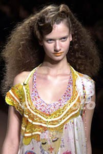 十一月正在東京舉行的二00三年春夏時裝展上,明媚的低胸裙裝別具風情。作者:陶光雄