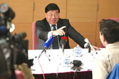 十六大代表、中共遼陽市委書記陳世南十二日在十六大新聞中心回答記者有關保障下崗工人生活的問題。作者:毛建軍