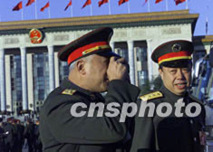 出席中共十六大的白發將軍在北京人民大會堂前拍攝有紀念意義的瞬間。作者:滿會喬