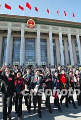 中國共產黨第十六次全國代表大會十四日上午在北京人民大會堂閉幕,代表們興高彩烈步出會場。作者:毛建軍