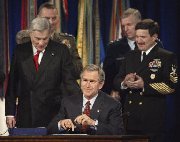 他再次警告,伊拉克拒絕履行聯(lián)合國(guó)安理會(huì)決議的后果將是戰(zhàn)爭(zhēng),美國(guó)將會(huì)在危險(xiǎn)增大之前采取先發(fā)制人的行動(dòng)。