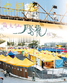 黃大仙騰龍墟,工人正在布置場地。文匯圖