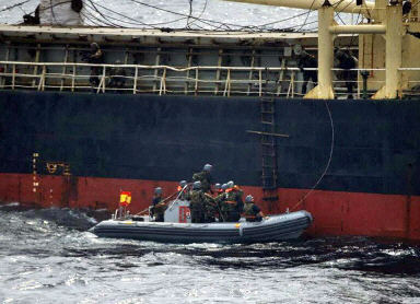 10日,西班牙軍艦根據美國的情報在阿拉伯海海域攔截了這艘貨船,船上裝有據信從北朝鮮運往也門的軍火。