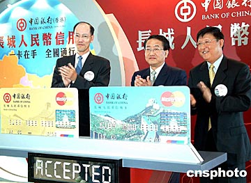 圖:中銀香港推介首張人民幣信用卡