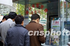 由著名導(dǎo)演張藝謀執(zhí)導(dǎo)的武俠巨片《英雄》二十日在全國(guó)統(tǒng)一上映。《英雄》上映首日上海票房銷售告罄。圖為申城影迷在排隊(duì)買票看《英雄》。作者:湯彥俊