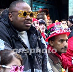 也許,這個時候,人特別需要勉強保持一點好心情,就象一些迷信的中國人,希望春節除夕大放鞭炮、驅散“霉氣”一樣。隨著時代廣場數十萬人齊聲高喊:“……五、四、三、二、一”,直徑約兩米、激光照亮的水晶球從夜空徐徐降落,十萬支紅色氣球翩翩起舞,紅、白、藍色紙屑雪花般飄灑下來。那情景,美麗,也有些夸張。不過,二○○三年降臨到美國東海岸時,人們大多希望,新一年的紐約,一切平安。(完)