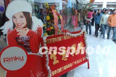 廣東惠州市數碼商業街新年之際隆重開業,在新落成的數碼商業街上,影星趙薇的廣告隨處可見。中新社傳真 錢興強攝