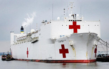 圖為美國海軍正在服役的救傷船。內置12組手術操作室、1000個傷病床位以及X光掃描、物理治療室等完整的醫(yī)療設備供駐中東美軍使用,若美伊開戰(zhàn),該船將作為美軍海上作戰(zhàn)群的救助醫(yī)療中心。