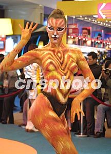 圖:人體彩繪表演為亞洲信息技術展助陣