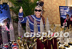 歌星陳奕迅1月7日悉心打扮出席香港的「松日Matsunichi MP3 THIRD ENCOUNTER陳奕迅演唱會」記者招待會,他的歌曲「明年今日」剛奪得勁歌金曲金獎,圖為陳奕迅在記招上手舞足蹈難掩喜悅心情。鄧慶樂 攝
