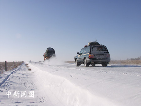 返回艙從內蒙古草原沿公路運往北京(2)孫陽 攝