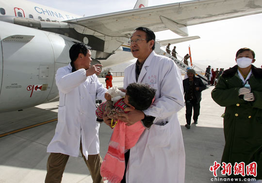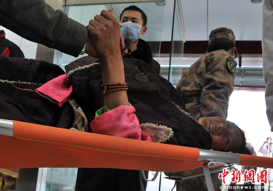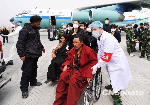 玉樹地震災區14名藏族重傷員轉移至西寧