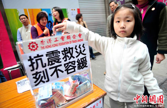 香港市民為地震災(zāi)區(qū)街頭募捐