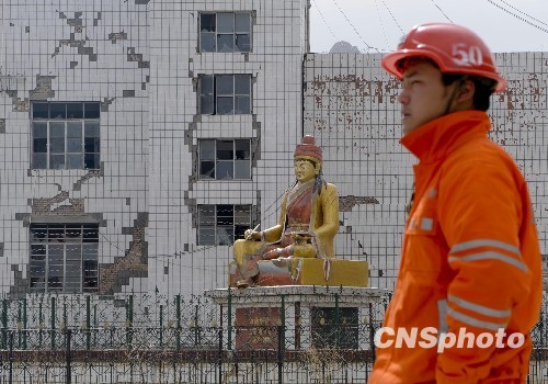 玉樹地震災(zāi)民清理廢墟中的法器