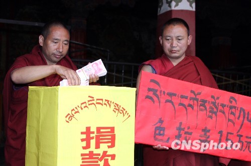 圖:藏傳佛教為青海玉樹災(zāi)區(qū)捐款
