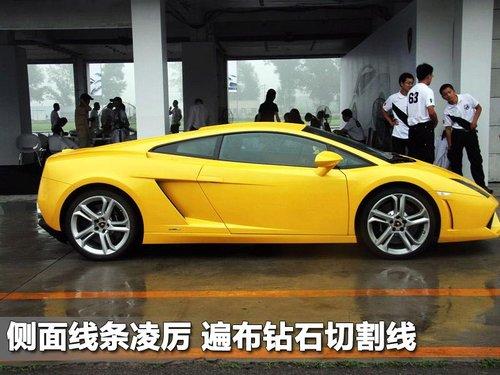 蘭博基尼GallardoLP 550-2側面依舊棱角分明,各樣的棱線鑲嵌其中,外后視鏡則是點睛之筆,位于后部的進氣散熱格柵則是大動力的需要, LP 550-2的特別標識也鑲嵌在側面的后部。
