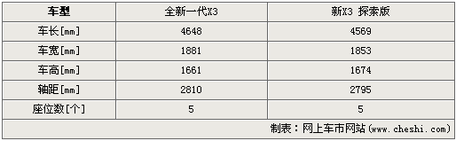 車身尺寸方面,換代寶馬X3長寬高分別為4648mm/1881mm/1661mm,軸距為2810mm,全方位提升了整車的內部乘坐感受。相比老款X3,其長度延長了83mm,寬度拓寬了29mm,高度提升了40mm,軸距同時也得到了15mm左右增長數值。車內空間的寬大可想而知。