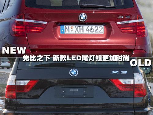 換代X3尾部的設計相比起直白的前臉,更加立體有形。尾燈采用略向中心傾斜角度,燈組設計成放射狀,LED材質的加入突出了節(jié)能減排的環(huán)保主題,與老款大塊面積紅白拼合的設計形成了鮮明的對比,車型的檔次感得到了體現(xiàn)。