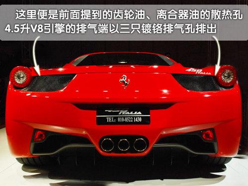 在458Italia的車尾兩側(cè),同樣分別設(shè)計有兩處通風(fēng)口,當(dāng)氣流最終達(dá)到車尾的時候458Italia的設(shè)計者再一次將氣流轉(zhuǎn)變?yōu)橛幸嬗邶X輪油和離合器油散熱的氣流,從車尾將散熱器的熱量帶走。