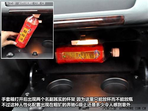 然而一向粗枝大葉的奔馳G級也有考慮細(xì)致的一面。打開手套箱,放平的手套箱蓋就是一個可以放兩個杯子的托盤,為旅途時的小憩提供了方便。
