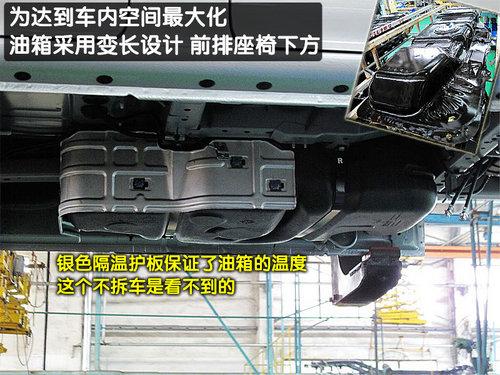 在總裝車間里我們發(fā)現(xiàn)了NV200的油箱,NV200為了更好的是車內(nèi)空間最大話,采用了扁平的油箱設計,油箱位于前排座椅下。在油箱前側(cè)還發(fā)現(xiàn)了隔溫護板,以保證油箱的溫度。相比這個是不來生產(chǎn)車間是看不到的。