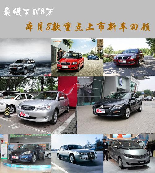轉眼就到了月底,作為車市傳統的淡季,在整個7月份國內車市略顯低迷,汽車銷量一路走低,而廠商庫存壓力驟增,新車推出數量也較前幾個月有所減少。本月上市的全新車型有鈴木凱澤西、一汽-大眾CC和比亞迪M6等三款車型,還有數款年度改款車型,包括2011款駿捷、2011款晶銳以及2010款花冠EX等,其中售價最低的不到8萬,最高的在30萬左右。下面我們匯總了一下本月上市的8款熱點新車,對此感興趣的朋友可以作為參考!