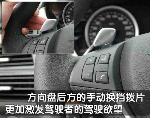 寶馬X6是其X系列中唯一標準配置帶換檔撥片方向盤的車型。由于換擋撥片集成在方向盤上,所以無論方向盤處于什么位置,駕駛者都可以用換檔撥片平滑而舒適地進行升降檔。用方向盤上的多功能按鈕還可以快速操縱電話和音響系統,使駕駛者將注意力集中于駕駛,駕駛者還可以根據個人偏好對方向盤上的兩個按鈕進行單獨編程。