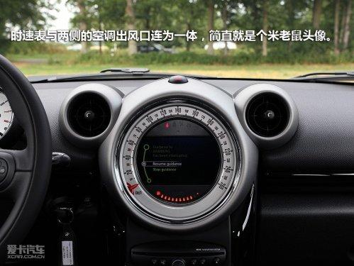 不用想,中控臺上最大的那個時速表肯定會成為視覺焦點,原因之一是時速表與兩側的空調出風口連為一體,簡直就是個米老鼠頭像,可愛至極。原因之二是這個時速表中間增加了一塊6.5英寸液晶顯示屏,顯然,MINI將東家的i-Drive多媒體控制系統移植到了Countryman上,命名為MINIVisual Boost,只是沒有寶馬上那個顯眼的控制旋鈕,在MINI上這個旋鈕被放在了換擋底座的后方,使用上還算順手,只是造型比較簡化,但同樣擁有兩個直觀的快捷鍵。