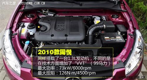 2010款1.3L同悅搭載了帶有雙VVT技術的雙頂置凸輪軸全鋁發動機,相比老款在性能上有了小幅提升,最大功率99Ps/6000rpm,最大扭矩126N·m/4500rpm;該發動機并非自主研發,而是江淮進行針對性改造誕生的;在實際測試中變速箱配合著發動機,整個加速過程比較線性,動力分配均勻,沒有突兀的爆發點,最終加速時間為11.3s,成績合格。