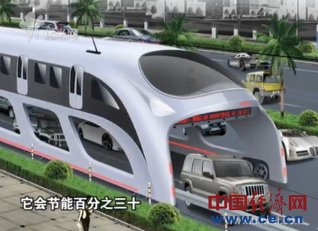 這家公司宣稱,“3D立體交通快線”實(shí)際上一種軌道交通系統(tǒng),只不過它的軌道埋在地面以下,而其乘客艙則距離地面有兩米之高,任何高度低于2米的小型車輛可以在下面自由穿行。與傳統(tǒng)城市公交車相比,這種軌道交通系統(tǒng)能夠節(jié)能30%以上。