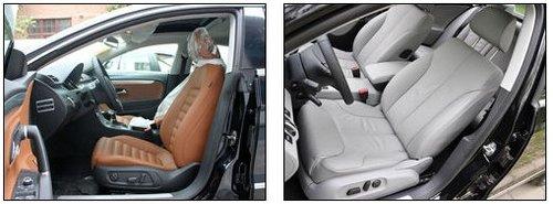 座椅方面同樣體現(xiàn)出了兩款車型不同的設計理念,CC豪華版的棕色波浪式座椅,看起來包裹性出色,側向給予的支持力也還算到位,如果您另對黑色座椅鐘愛尤佳,那么選裝Alcantara材質(zhì)拼裝的翻毛真皮座椅一定會是個更好的選擇。邁騰淺色的內(nèi)飾看起來更加厚重,偏向家用風格,坐上去感覺包裹性一般,但真皮座椅質(zhì)地還算比較不錯。