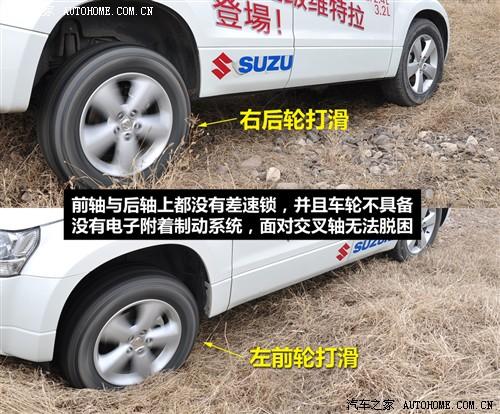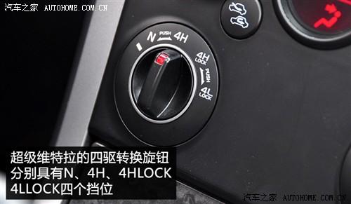 超級維特拉帶有中央差速器,正常行駛時為全時四驅(qū)模式,并可通過位于中控臺上的旋鈕來鎖止中央差速器,不過,該車并沒有左右輪間限滑裝置,面對交叉軸項(xiàng)目時還是無能為力,但是依靠發(fā)動機(jī)強(qiáng)勁的動力行駛在普通的非鋪裝路面上還是問題不大的。
