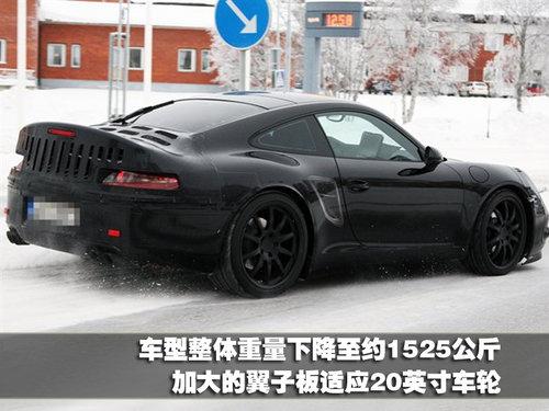 新款911保留了鋼平臺結(jié)構(gòu),主要由組合的鋼鐵,鋁和塑料復(fù)合材料建造的機(jī)構(gòu)。體重的優(yōu)化使得新款比之前削減了大約45公斤重量,車型整體的重量下降至約一千五百二十五公斤。在車身尺寸方面,新一代911長度和寬度都有提升,但基本輪廓不會發(fā)生大幅度的改動。外觀最大的改變在于加大的翼子板,目的是為了適應(yīng)20英寸車輪的大小。