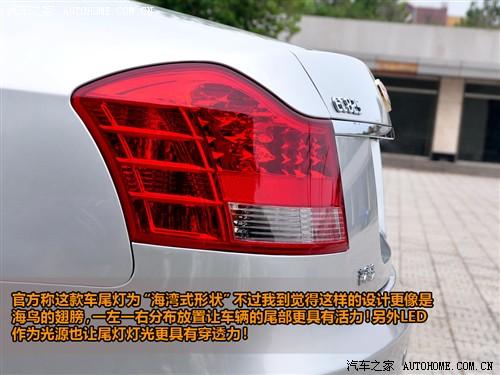 除了線條比較優美外,帝豪EC8在大燈設計上也是比較新穎的,我們此次試駕的EC8車型在前大燈上使用了帶透鏡的鹵素大燈,不過這與我們在北京車展上見到的EC8展車不一樣,那時候的EC8配有氙燈和大燈清洗裝置,本次試駕的車沒有大燈清洗,廠家工作人員表示未來量產車一定會有氙燈和大燈清洗!除了前燈外,EC8的尾燈設計成了類似于海鳥翅膀的樣子,并使用了LED作為光源。