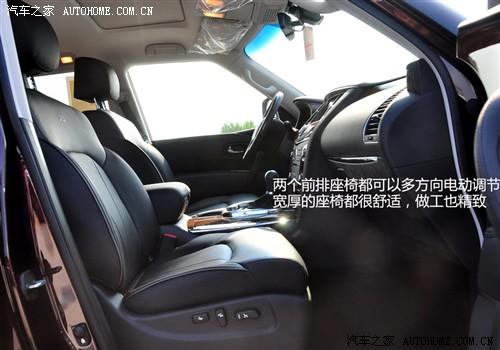 2011款英菲尼迪QX56的車身尺寸十分夸張,車長5290mm寬2030mm高1935mm,軸距達到3075mm,所以空間和舒適性絕對不是問題。即使是第二排乘客也擁有極高的乘坐感受,獨立空調、座椅通風、中央扶手箱都是后排獨享的配置。
