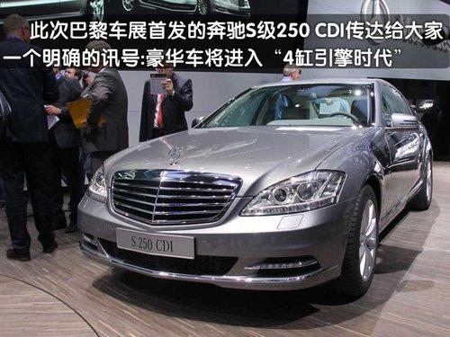 奔馳S250 CDIBlueEfficiency成為燃油經濟性最高的豪華車。全新奔馳S250CDI是S級長達60年歷史中首次配備四缸柴油機,這臺2.2升柴油機與七前速G-Tronic Plus自動變速箱配搭,峰值馬力為201bhp,369 lb-ft(約合500 Nm)的強大扭矩在低至1600 rpm時獲得。新車從靜止加速到96km/h僅需8.2秒,極速達到149mph(約合240 km/h),性能并沒有因為照顧油耗和排放而受到過多損失。