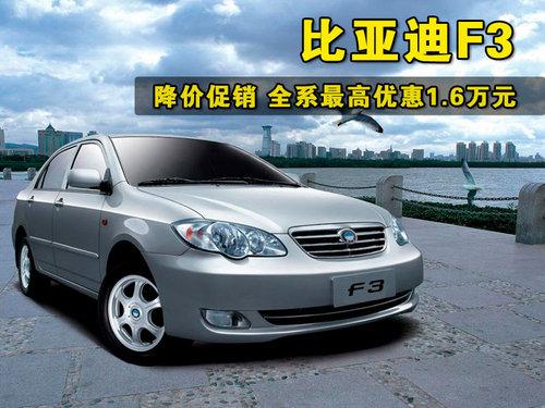 比亞迪F3是一款實用的家用車型,較為經濟的用車成本和較低的入門價格能很好的滿足消費者的需求。今年比亞迪F3又推出了智能白金版,新款車型增加了無鑰匙系統、智能娛樂通訊系統等高端配置。近日,網上車市記者從比亞迪北京經銷商處了解到,比亞迪F3全系車型最高降價1.6萬元,詳情請見下表: