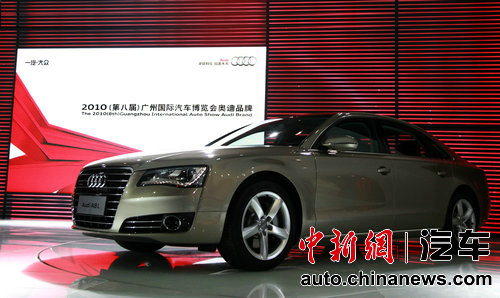 近2000平米的展臺上,由全新奧迪A8L領銜,包括奧迪e-tron純電動概念超級跑車概念車、奧迪A3 Sportback、A4L、A5、S5、A6L、TT、R8 Spyder、Q5、Q7等采用奧迪高效模塊技術的強大車型陣容,充分展示出奧迪品牌引領時代的進取魅力,完美詮釋了廣州車展“先進科技,共創未來”的主題。
