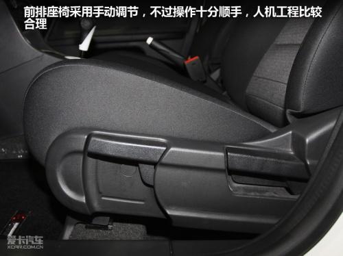 MG3配備的織物座椅與MG6裝備的織物座椅非常類似,支撐力充足,包裹感也比較到位,但座墊稍硬,會影響一些乘坐舒適感,還好織物座椅的面料質地不錯。這臺MG3展車配備了手動調節座椅,操作起來比較順手,人機工程學設計合理。
